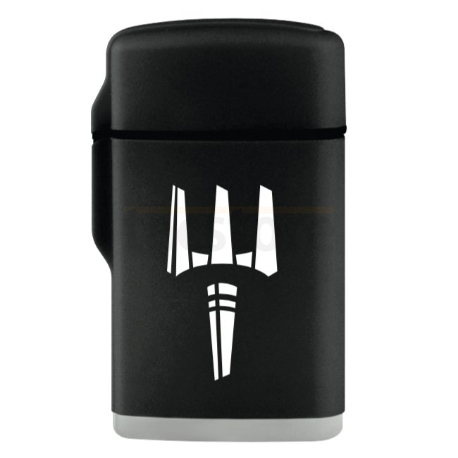 Pitchfork Storm Pocket Lighter - Black: Original ZORR windproof jet flame lighter with adjustable micro burner up to 1300°C. Gas-refillable, non-reflective black matte finish, soft grip surface, and lightweight design. Quiet open/close secure cap. Shippin