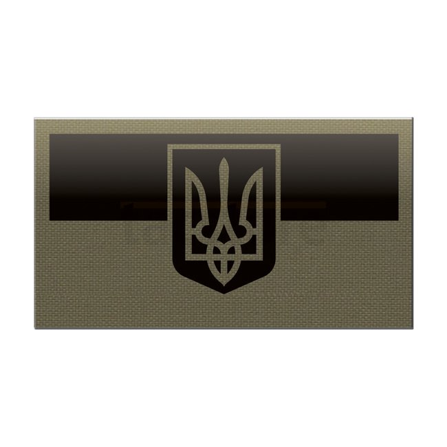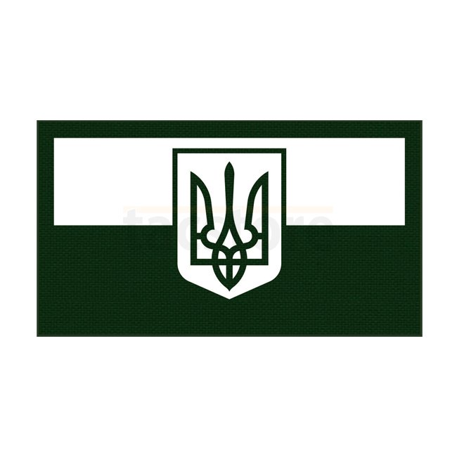 The Pitchfork Ukraine IR Print Patch in Ranger Green features a front made of IR foil with a distinctive print, while the back is designed with a hook surface. This patch measures 90 x 50 mm, providing a unique and practical accessory.