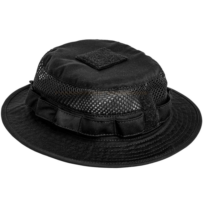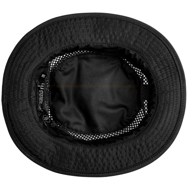 While maintaining the classic boonie hat shape, the crown is kept flat for a low profile. A mesh fabric is used all around the hat, which enables maximum air circulation. On the upper area a 50 x 50mm loop surface can be found to attach an IR reflective patch. Around the hat we used the same polyester-cotton material instead of stiff webbing ensuring an all-around low IR signature. Hidden underneath the circumference a shock cord is sewn in that allows infinitely variable size adjustment for a perfect fit, keeping the selected size by a cord stopper in the back. The brim is kept extra narrow. All other features found on standard models like the chin strap or a neck cover have been left away. Functionality thru simplicity.