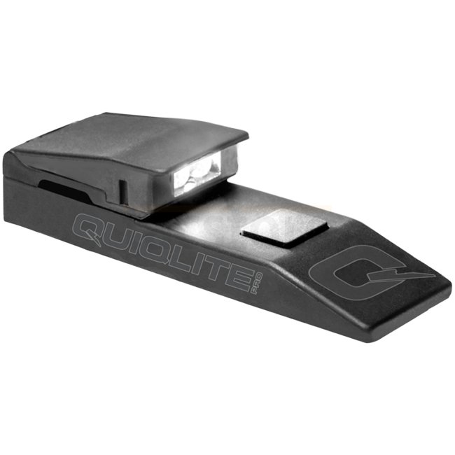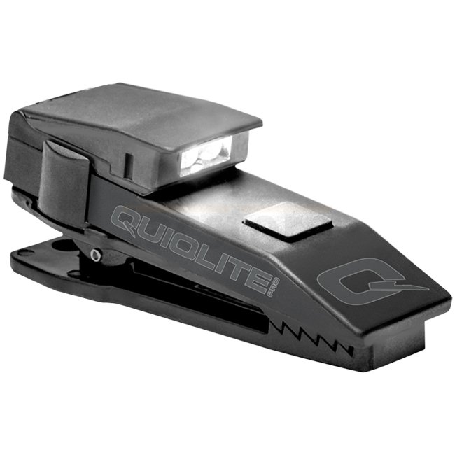 Hands-free pocket concealable flashlight featuring white LED, safety strobe, dual LEDs, adjustable light arm, magnetic clip, weather-resistant nylon housing, and more. Set includes QuiqLitePro, magnetic QuiqClip, QuiqFlare attachment, 2 replaceable lithiu