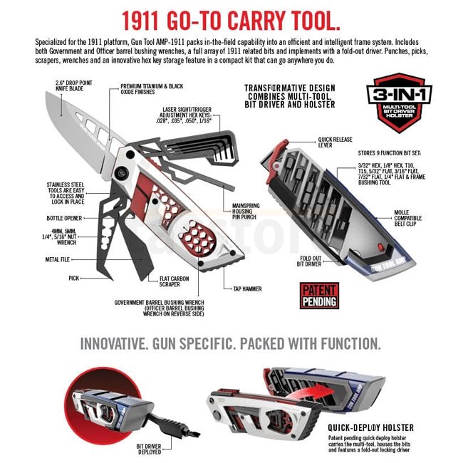 Real Avid Gun Tool AMP-1911: Specialized for the 1911 platform, this compact kit includes all the essential tools like barrel bushing wrenches, bits, driver, punches, picks, scrapers, wrenches, and hex key storage. Perfect for in-the-field use or on-the-g