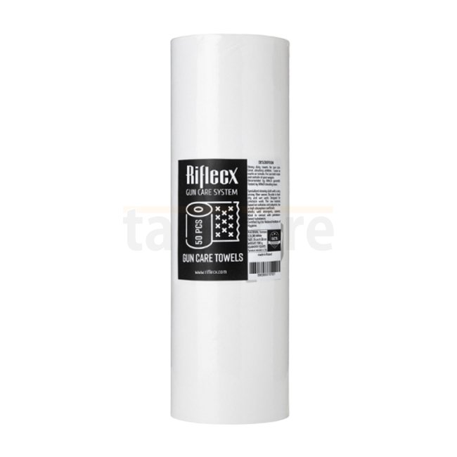 RifleCX Gun Care Towels made from robust fiber fabric for dry & wet cleaning. High absorbency. Cellulose & polyester blend. Leaves no streaks. Ideal with solvents. Works well with petroleum. 50pcs in a roll.
