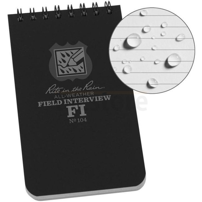 Rugged Rite in the Rain Field Interview Notebook with a tough cover and water-resistant paper. Perfect for investigations, this 3" x 5" notebook protects your notes in any condition. Made in the USA.