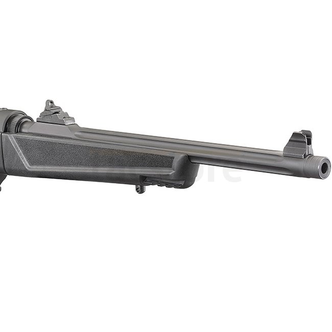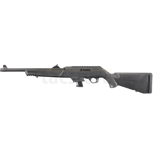 The Ruger PC Carbine 9mm Luger Model 19101 offers rugged reliability and innovative modularity. Featuring a takedown design, it allows quick separation of the barrel and action for easy transport and storage. Its dead blow action with tungsten weight minimizes recoil and muzzle rise for better control.