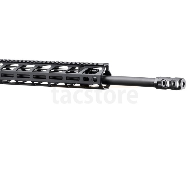 The cold hammer-forged chrome-moly steel barrel features ultra-precise 5R rifling and a black nitride finish for superior accuracy, longevity, and easy maintenance. The Ruger 2-port Boomer muzzle brake effectively reduces felt recoil while maintaining compatibility with other muzzle devices via 5/8"-24 threads.