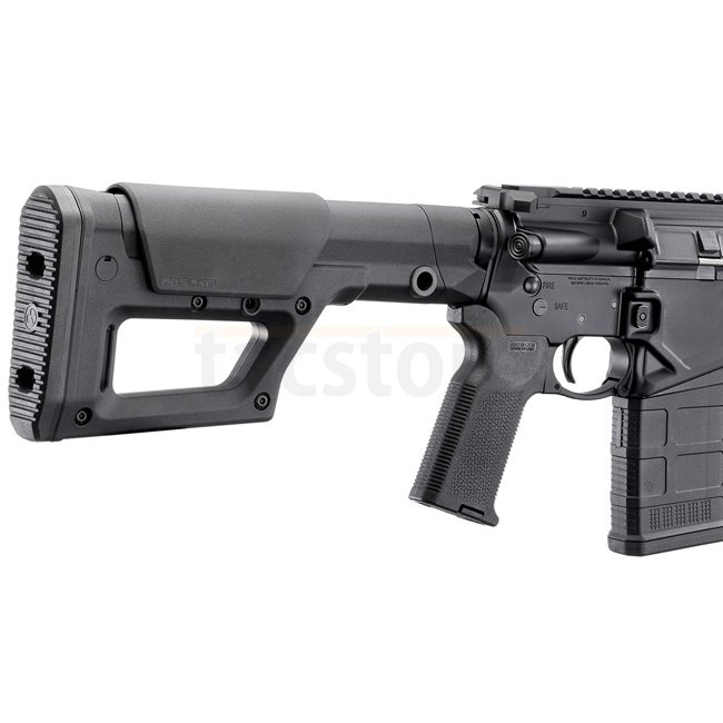 The lower receiver features a flared magazine well for quick magazine insertion and is fitted with a Magpul PRS Lite stock providing secure length-of-pull and comb height adjustments. The Magpul MOE-K2 grip ensures ergonomic control of the trigger and safety.