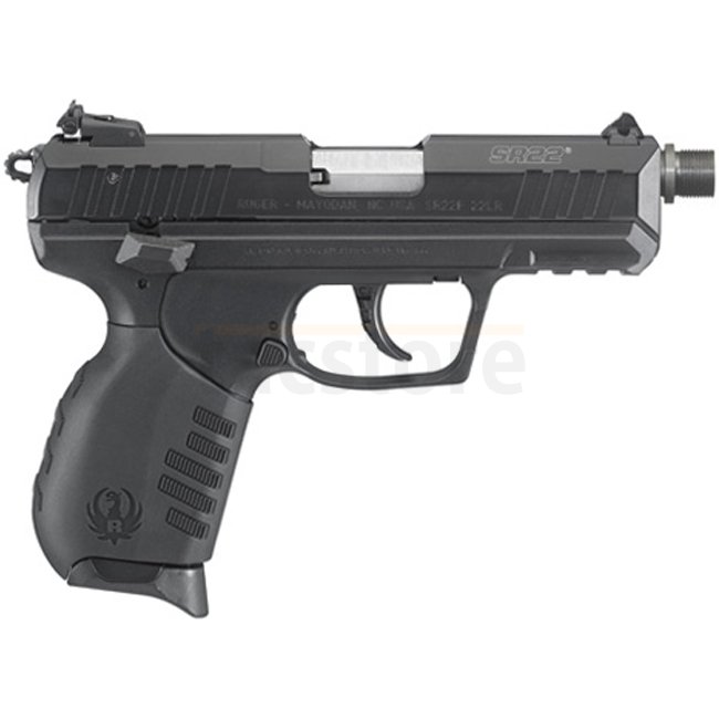 The Ruger 22 LR Threaded Barrel Standard offers versatile rimfire performance with suppressor-ready capability, lightweight polymer frame, aerospace-grade aluminum slide, and customizable grip options.