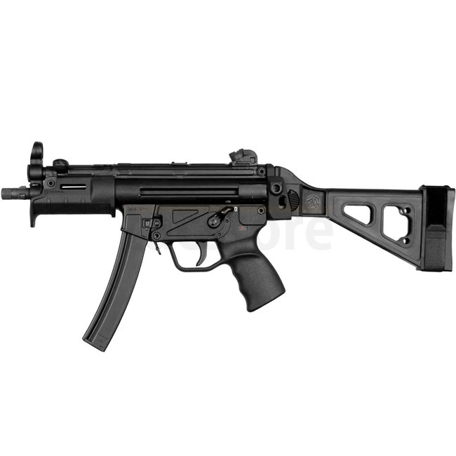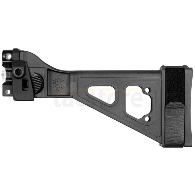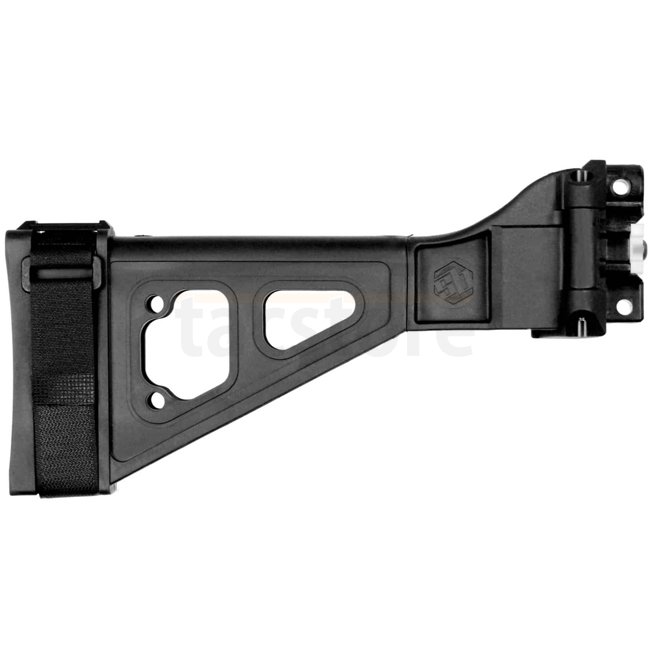 The SBT5K is designed specifically for MP5K-style reverse stretch platforms. It offers a side-folding polymer end plate, compact profile, and includes an adjustable nylon strap for arm stability.