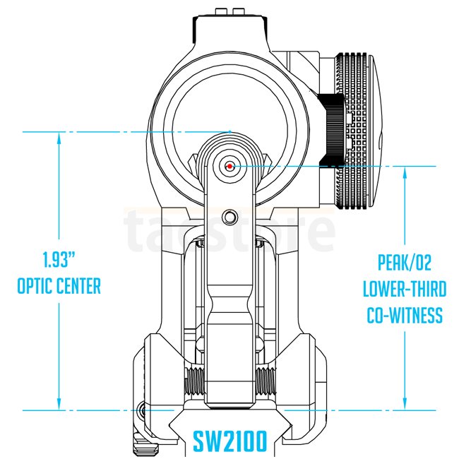 1.75″ height provides lower 1/3rd co-witness with 1.93 height optics