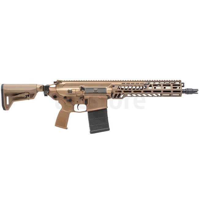 The Sig Sauer MCX-SPEAR is the next evolution of the SIG MCX platform, developed to meet the rigorous demands of military and tactical shooters. Designed as a true multi-caliber rifle, the MCX-SPEAR is chambered in 7.62x51 NATO and features a compact 13-inch Cold Hammer Forged Steel barrel for superior durability and accuracy. This cutting-edge firearm boasts a lightweight yet robust design, offering unmatched reliability and performance in the most demanding conditions. Its fully ambidextrous controls and free-floating M-LOK handguard provide superior adaptability, while the adjustable gas system ensures seamless operation across various environments. Perfect for tactical use or precision shooting, the MCX-SPEAR sets the standard for modern rifle systems.