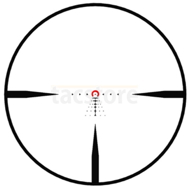 Illuminated reticle optimized for both close-range and extended-range engagements.