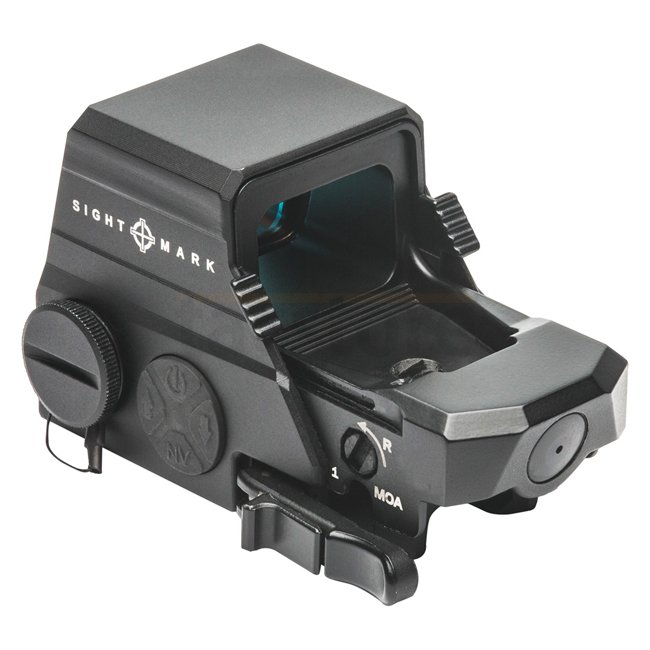 Sightmark Ultra Shot M-Spec LQD Reflex Sight in Black is a high-quality reflex sight with 1x magnification and 65 MOA Reddot-circle-crosshair reticle pattern. It features 10 brightness settings, IP68 protection, and is suitable for various applications. L