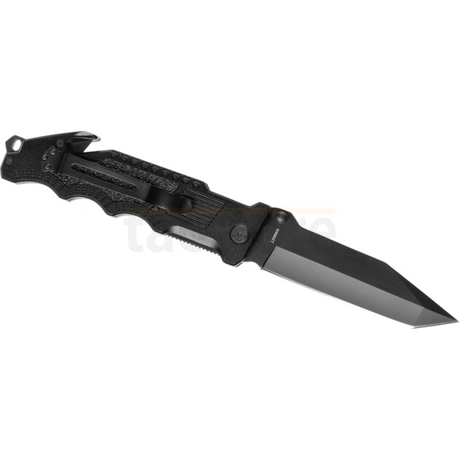 High-quality Smith & Wesson Border Guard SWBG2T Tanto Folder in sleek black. Durable and stylish, perfect for everyday use. Features a tanto blade for precision cutting.