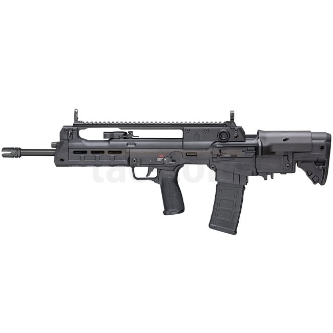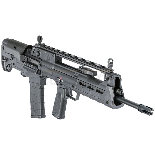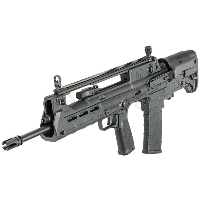 The bullpup configuration positions the action and magazine behind the trigger, reducing overall length while maintaining a full-length barrel for effective downrange performance.