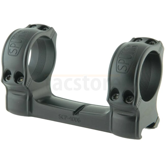 The Spuhr SCP-4006A is a Hunting Series scope mount designed for use on Picatinny rails. It features two classic rings, providing a traditional appearance without accessory interfaces. The mount can be oriented for both left- and right-handed shooters and includes two separate side clamps.