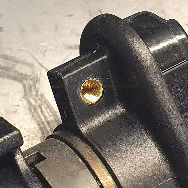 The Spuhr R-429 cheek piece detent is a solid brass component designed for use with the R-310 and R-410 stock assemblies. It replaces the M5 screw of the cheek piece, allowing for a secure fit while enabling quick removal in emergency situations to access iron sights.