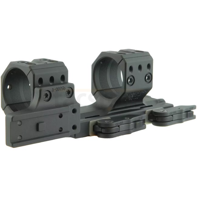 The Spuhr A-0025B is an interface designed to attach an Aimpoint Micro red dot sight to the left side (7:30-position) of an ISMS scope mount. This positioning allows for quick target acquisition alongside your primary optic, enhancing shooting versatility.