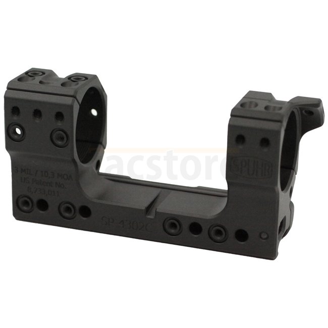 The Spuhr SP-4302C is a high-quality scope mount designed for rifles equipped with MIL-STD-1913 or STANAG 4694 Picatinny rails. It is particularly suitable for extended Picatinny rails combined with night vision equipment. This mount offers a 3 MIL (10.3 MOA) tilt, facilitating precise adjustments for long-range shooting. With a height of 38 mm (1.5 inches) and an overall length of 130 mm (5.12 inches), it provides versatility for various shooting configurations.