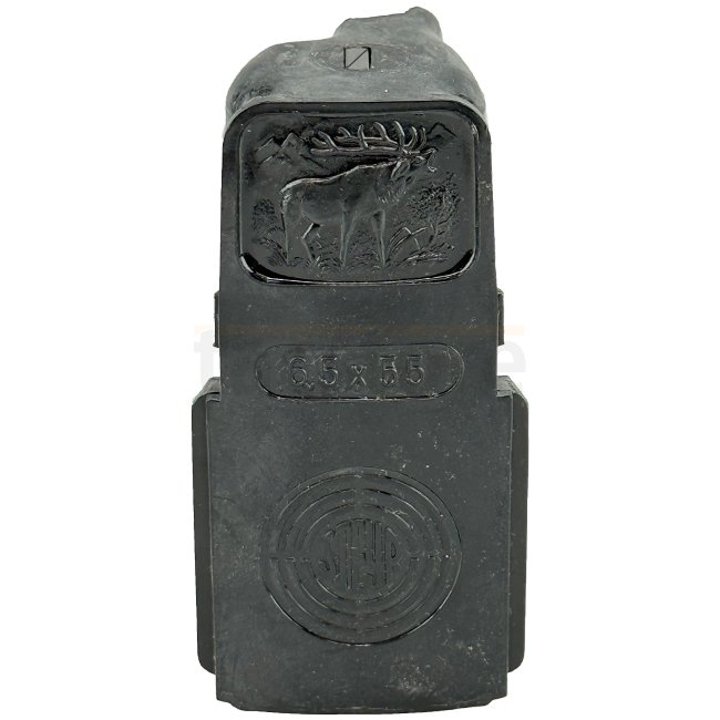 High-quality 4-round magazine designed for the Steyr Model M rifle chambered in 6.5x55. Durable construction and reliable performance.