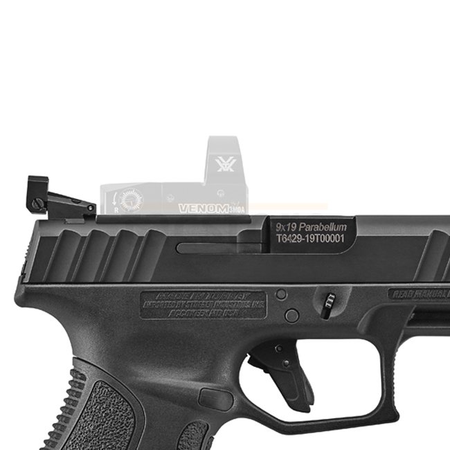 The four mounting plates included with the Stoeger STR-9S Combat allow compatibility with a variety of popular red dot sights. These plates support the following optics: