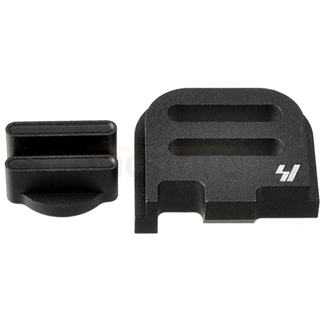 Enhance your Glock 43 with the durable Strike Industries Slide Plate V2 in sleek black. Allows for tool-less disassembly and is made of strong 6061 T6 Aluminum.