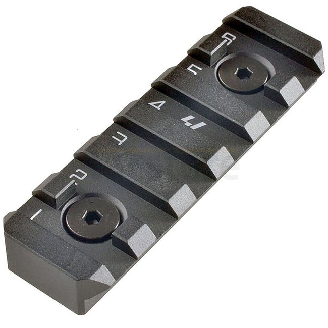 Upgrade your rail system with the Strike Industries LINK Rail Section, featuring 6 slots in sleek black aluminum 6061 for M-LOK/Keymod mounting. Weighing only 25g, dimensions 65 x 21 x 9mm.