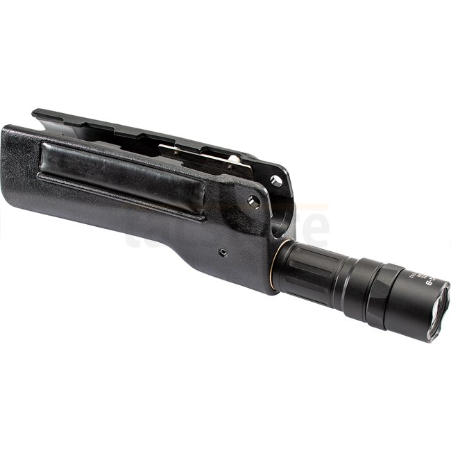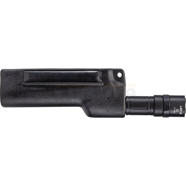 SureFire H&K MP5 LED Weapon Light 628LMF-B: 1000 lumens, 1.25h runtime, fits H&K MP5, HK53 Rifle & HK94 Carbine, 2x 3V CR123 batteries. 500g.
