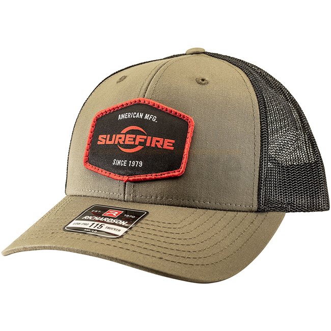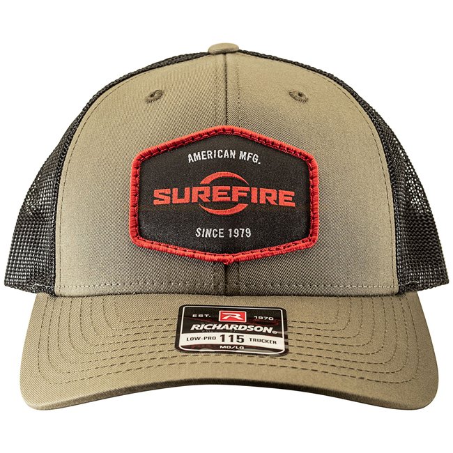 The SureFire LowPro Trucker Hat combines classic trucker cap styling with a bold aesthetic, featuring a prominent SureFire patch. Its Loden and Black color scheme offers a versatile look suitable for both work and leisure.