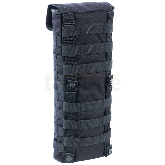 Tactical bladder pouch in black color, designed for easy attachment with three MOLLE loops. Measures 42 x 17 x 4 cm and weighs 260g.