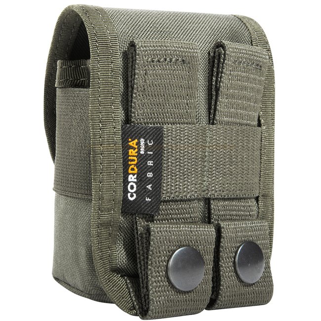 Hand grenade pocket. Variable construction makes it suitable for various models. Made of CORDURA® and material with IRR treatment. Both the European CORDURA® materials as well as web-bing, hook-and-loop fasteners and buckles meet the high German Bundeswehr standards TL 8305-0278 and TL 8305-0281 with regard to the IRR camouflage effect (IRR 650 – 1250nm / 10 – 42%).