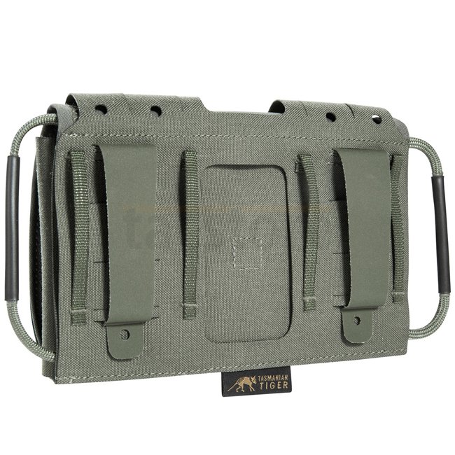 Small, flat IFAK pouch for mounting on MOLLE surfaces or on the belt. The fold-out first aid panel, which can be individually equipped, can be pulled out on both sides. Made of laminated CORDURA® material.