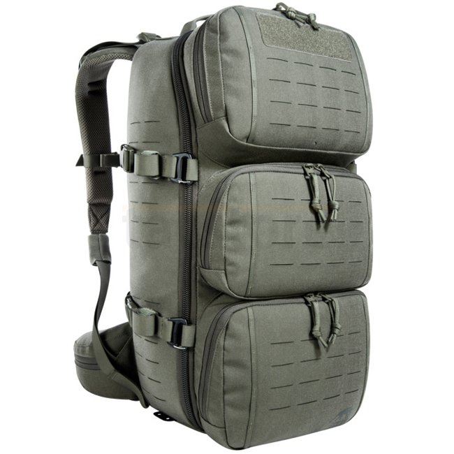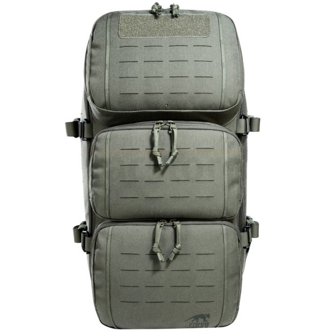 Small combat backpack with extremely variable carrying system. The main compartment of the 24-liter backpack is lined with MOLLE hook-and-loop areas for individual equipment. The TT Modular Combat Pack 24 SL also features three front pockets with dividers, the lower one has space for three magazines. The shoulder straps can be adjusted in length to wear the backpack over protective vests.
