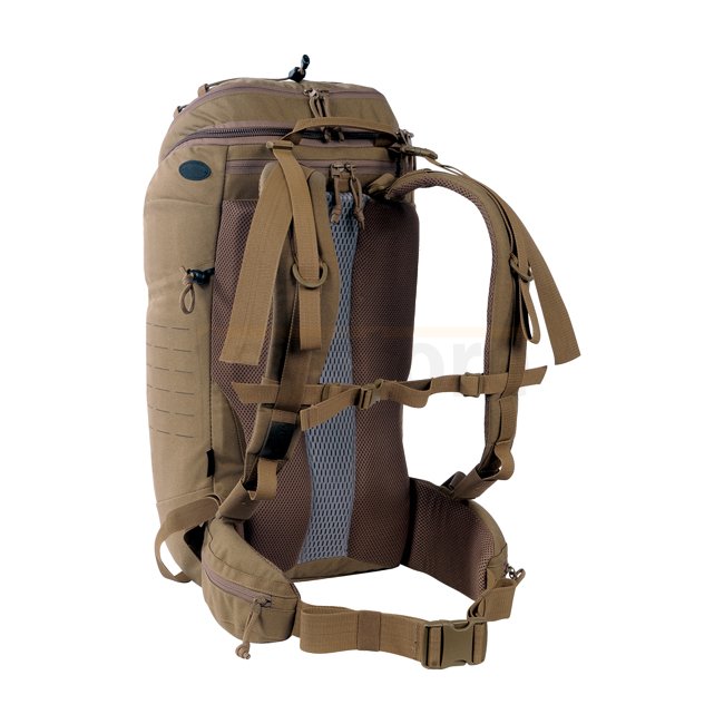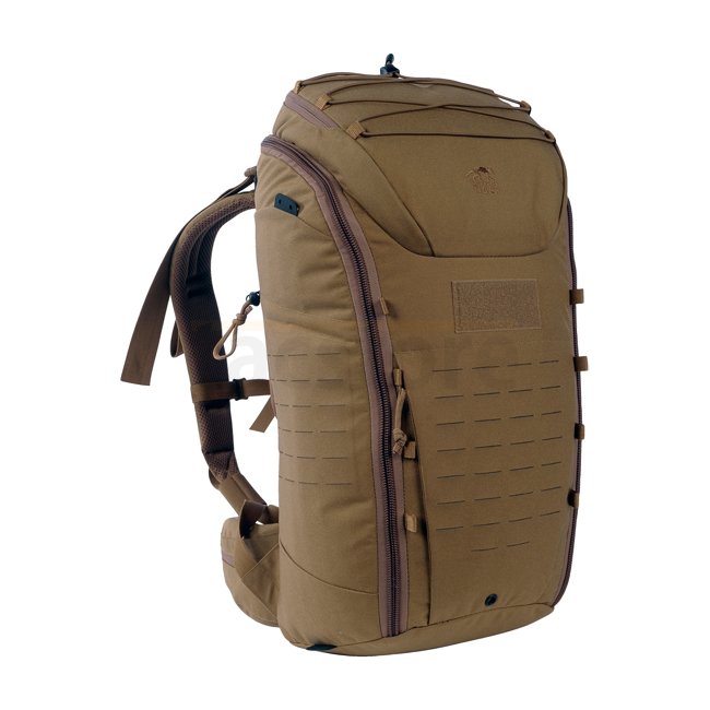 Tasmanian Tiger Modular Pack 30 - Coyote: Modular universal combat backpack with lid pocket, laser-cut MOLLE, Velcro sections, detachable hip fins, and accessories pouches. Padded Back Carrying System, adjustable shoulder straps, side compression, and ant