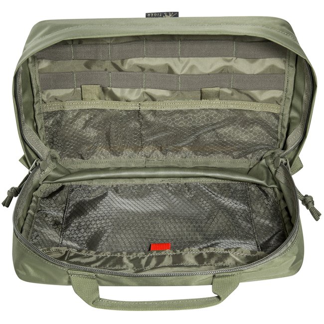 Sturdy equipment bag with 6 liter volume and handle. The Tasmanian Tiger Multipurpose Pouch VL can be attached to modular backpacks using the large, coverable hook-and-loop areas on the outside. On the inside it features mesh pockets, loops and an organizer.