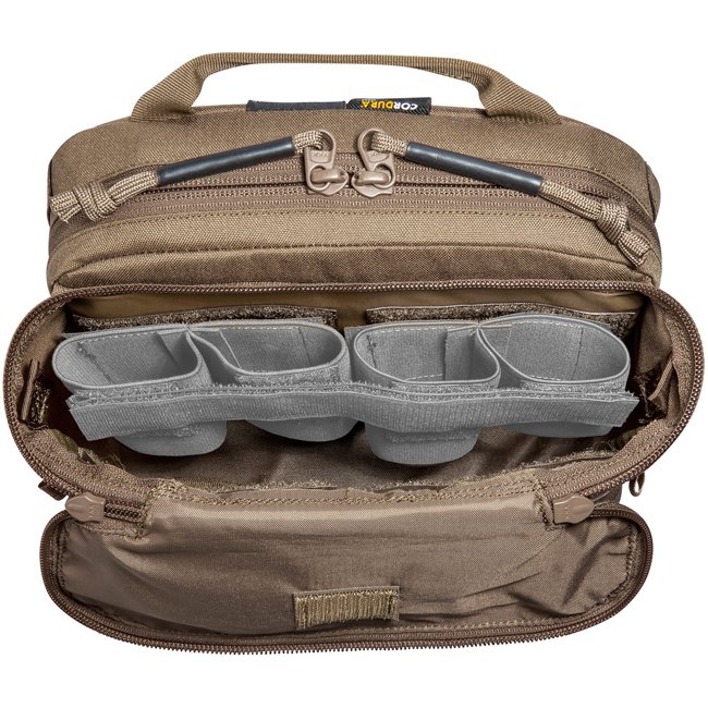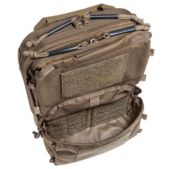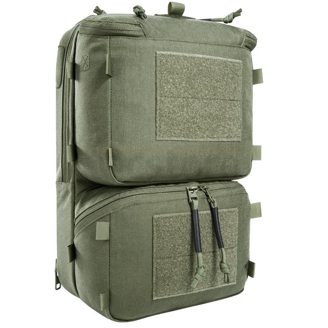 The TT Operator Pack ZP is designed for the TT Plate Carrier QR LC ZP, the attachment is via side zippers. The pack can also be mounted on other plate carriers on the market with the appropriate zipper length and width. In addition, the included zipper MOLLE strip allows it to be attached to plate carriers with the same MOLLE scheme. An additional adapter is included for attachment to classic MOLLE straps. The backpack has a flat main compartment, which is equipped with a hydration system preparation and whose back wall is covered with MOLLE hook-and-loop for individual equipment. It also has two large front pockets. The upper front pocket is equipped with interchangeable magazine inserts. The modular components can also be attached in the main compartment.