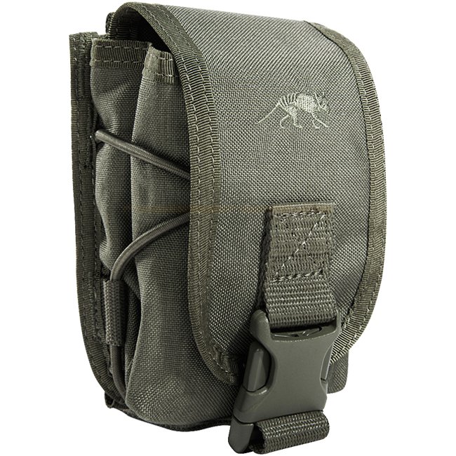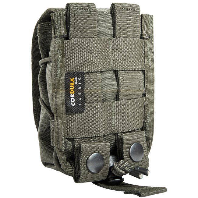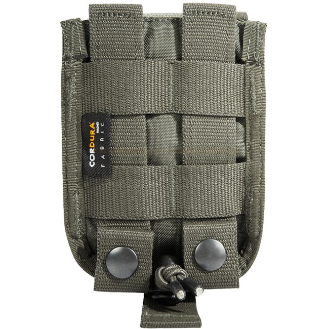 Universal shell pouch for various shells, smoke and haze cartridges. Made of CORDURA® and material with IRR treatment. Both the European CORDURA® materials as well as web-bing, hook-and-loop fasteners and buckles meet the high German Bundeswehr standards TL 8305-0278 and TL 8305-0281 with regard to the IRR camouflage effect (IRR 650 – 1250nm / 10 – 42%).