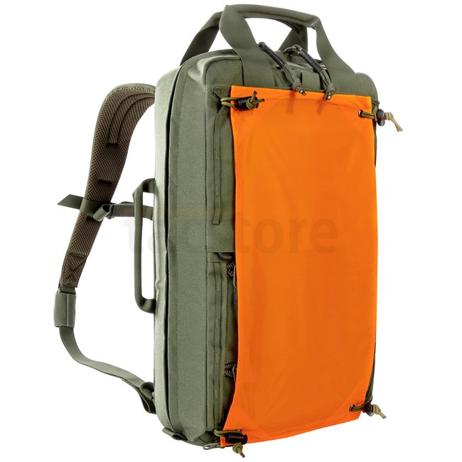 The TT Survival Pack offers the right size and equipment for the most important survival utensils. The fully expandable main compartment features six pockets of varying sizes with transparent lids, two of which can be removed. The main compartment is also covered with a large MOLLE hook-and-loop area, which allows for individual additions. The bottom compartment contains a double-sided rain cover (one side with stripes in warning orange) and a tac marker. Two shallow zippered compartments on the front are great for storing documents, for example. Additional pockets or panels can also be hooked into the existing hooks on the front. Backpack shoulder straps as well as carrying handles can be stowed when the backpack is stored in vehicles.