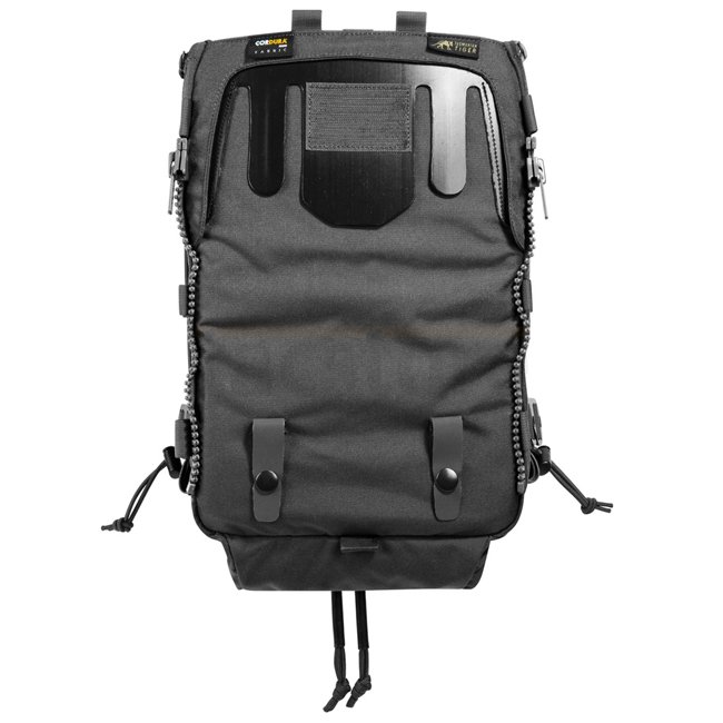 The TT Tool Pack ZP IRR is designed for the TT Plate Carrier QR LC ZP IRR, the attachment is via side zippers. The pack can also be mounted on other plate carriers on the market with the appropriate zipper length and width. In addition, In addition, the included zippered MOLLE strip allows it to be attached to plate carriers with a MOLLE scheme. An additional adapter is included for attachment to classic MOLLE straps. The fold-out main compartment is suitable for bolt cutters up to a length of 80 cm, the fold-out front compartment accommodates various entry tools, and the hooked-in tubes can also be removed. In addition, the pack has insertion options for breach pens on the sides. On the front is MOLLE in laser-cut design, the elastic side compression can be removed.