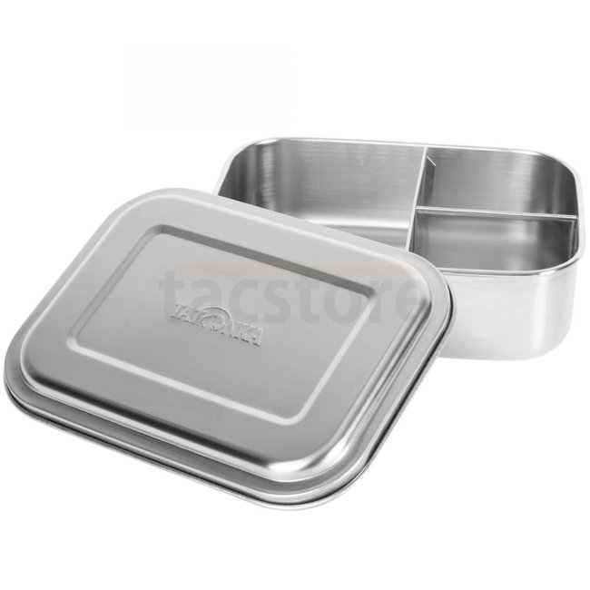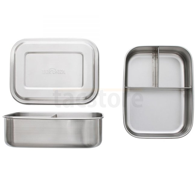 Large, unbreakable & pollutant-free stainless steel bread tin with three compartments: The Tatonka Lunch Box III 1000