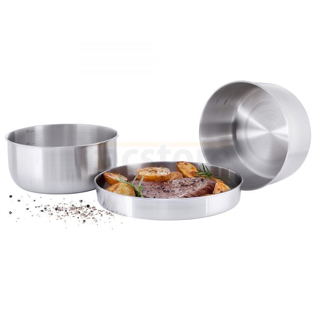 The Multi Pot Set is a practical basic equipment for the outdoor kitchen. The stainless steel camping cooking set consists of two pots and a pan. This can also be used as a pot lid or plate.