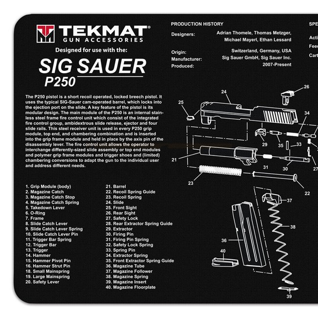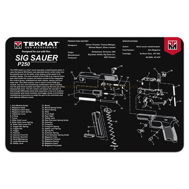 TekMat Cleaning & Repair Mat - SIG P250: Versatile 3mm thick mat, perfect for cleaning, repairs, or as a work pad. 43 x 28cm dimensions.
