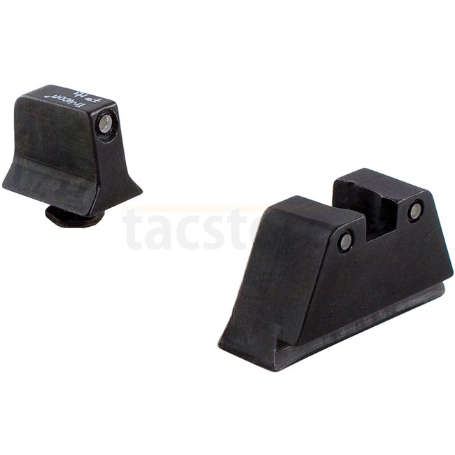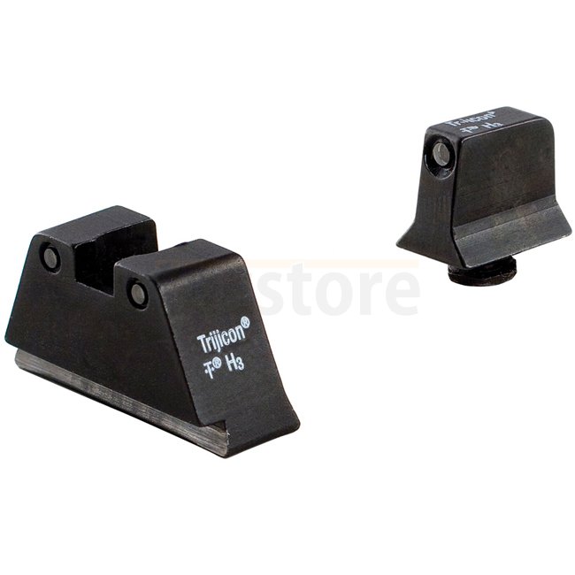 Trijicon GL201-C-600661 Glock Standard Frames Night Sight Suppressor Set - Black Outline / Green Lamps. Fits Glock models: 17, 17L, 19, 22, 23, 24, 25, 26, 27, 28, 31, 32, 33, 34, 35, 37, 38 and 39. Front-Sight: black Outline; green Tritium. Rear-Sight: b