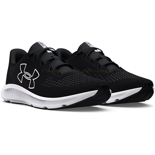Under Armour Mens Charged Pursuit 3 Big Logo Running Shoes - Black / White - 14