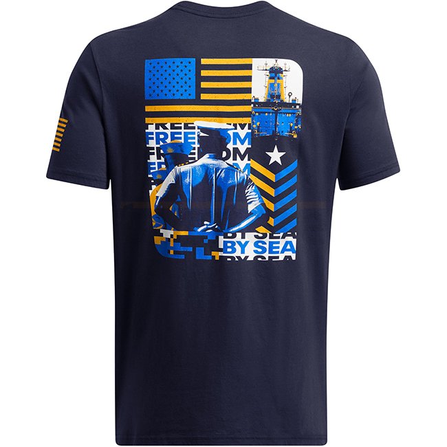 Under Armour Mens Freedom By Sea T-Shirt - Navy Blue / Steeltown Gold - XL
