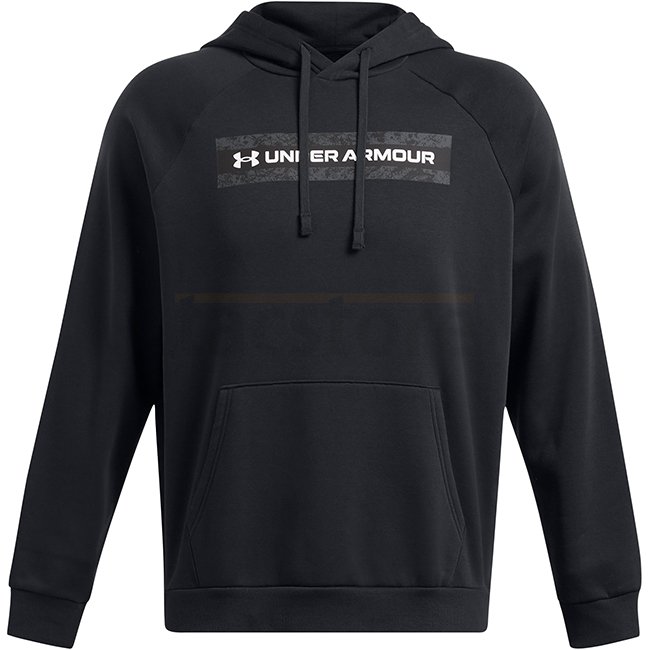 Under Armour Mens Rival Fleece Camo Chest Stripe Hoodie - Black / White - L