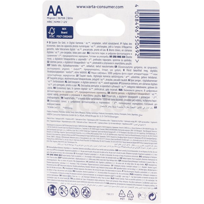 Varta AA Rechargable 2100mAh 4pcs are high-quality rechargeable batteries that provide long-lasting power for your electronic devices.