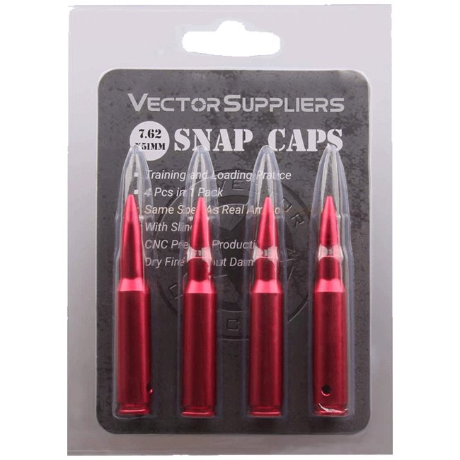 Vector Optics Practice Loading & Training Dummy Rounds 7.62x51mm - Set of 4 aluminum dummy rounds with soft silicon primers for realistic training.