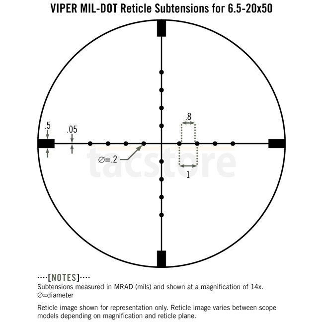 Vortex Optics Viper 6.5-20x50 PA Riflescope with Mil Dot Reticle - MOA. Premium optics, precision spring system, smooth erector system. 6.5-20x magnification, 50mm objective lens, 80-85mm eye relief, 30mm tube size, 1/4 MOA adjustment, 65 MOA elevation &