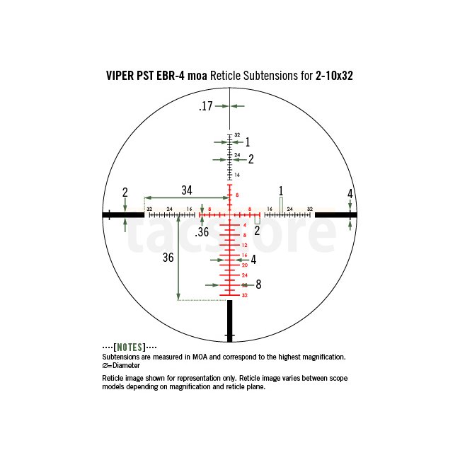 The Viper PST (Precision Shooting Tactical) riflescope boasts features associated with top-tier riflescopes, yet comes in at a lower price. Generation II offers an improvement of this features to make sure the shooter gets the maximum out of the optic. Matching reticle and turret measurements allow accurate, fast dialing of shots. The one-piece 30mm tube, precision-machined from a single solid block of aircraft-grade 6061-T6 aluminum, offers ample windage and elevation adjustment. EBR = Enhanced Battle Reticle.