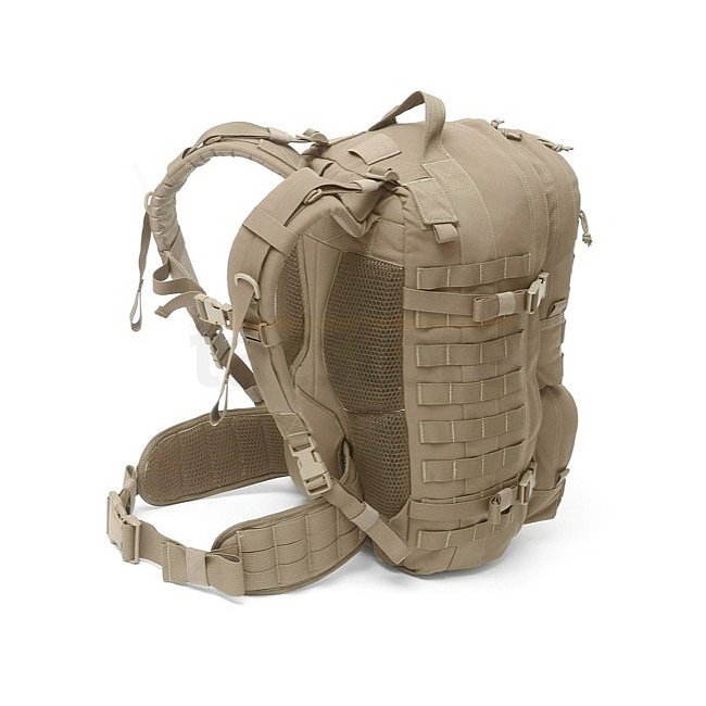 The inside compartment features 3 zipped mesh pockets on the inside of the lid for storage while the outside has small and large cargo pouch pockets to facilitate quick access to smaller mission critical items. Internally there is a hydration sleeve which has webbing sewn on in order to allow the attachment of various pouches when required. The top of the pack features Antenna and Hydration tube ports either side of the heavy duty carry handle.